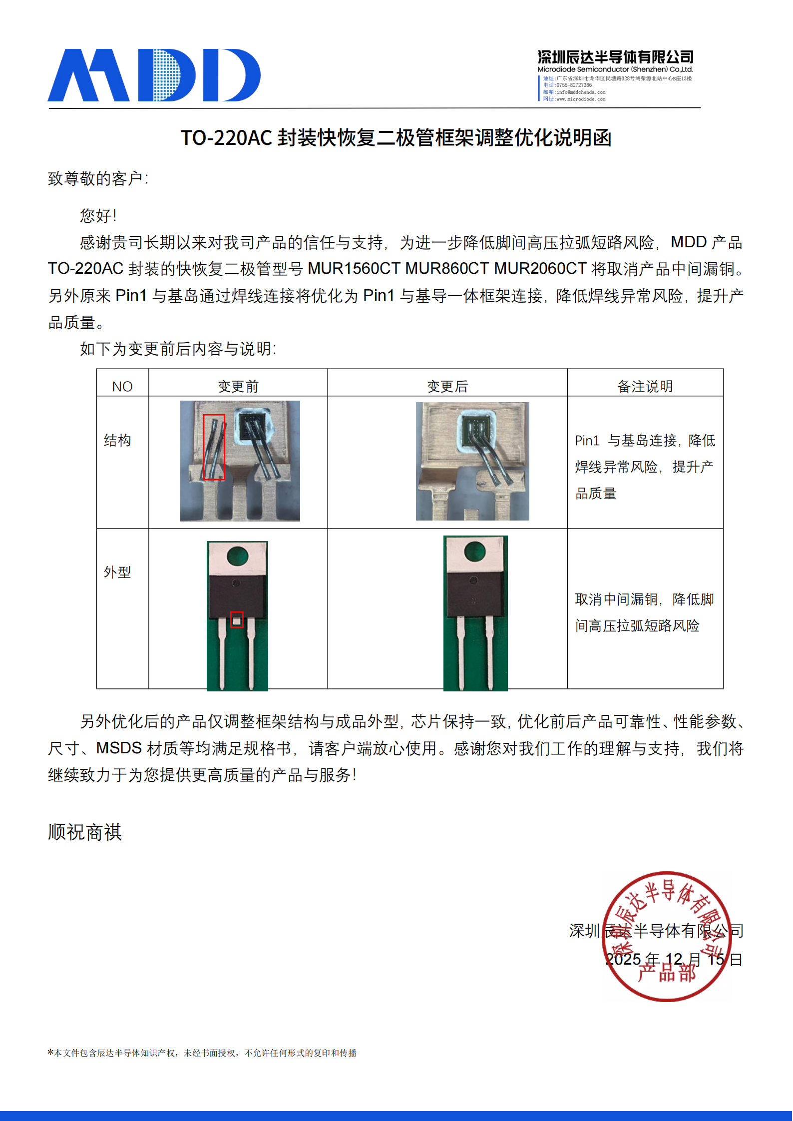 TO-220AC 封装快恢复二极管框架调整优化说明函